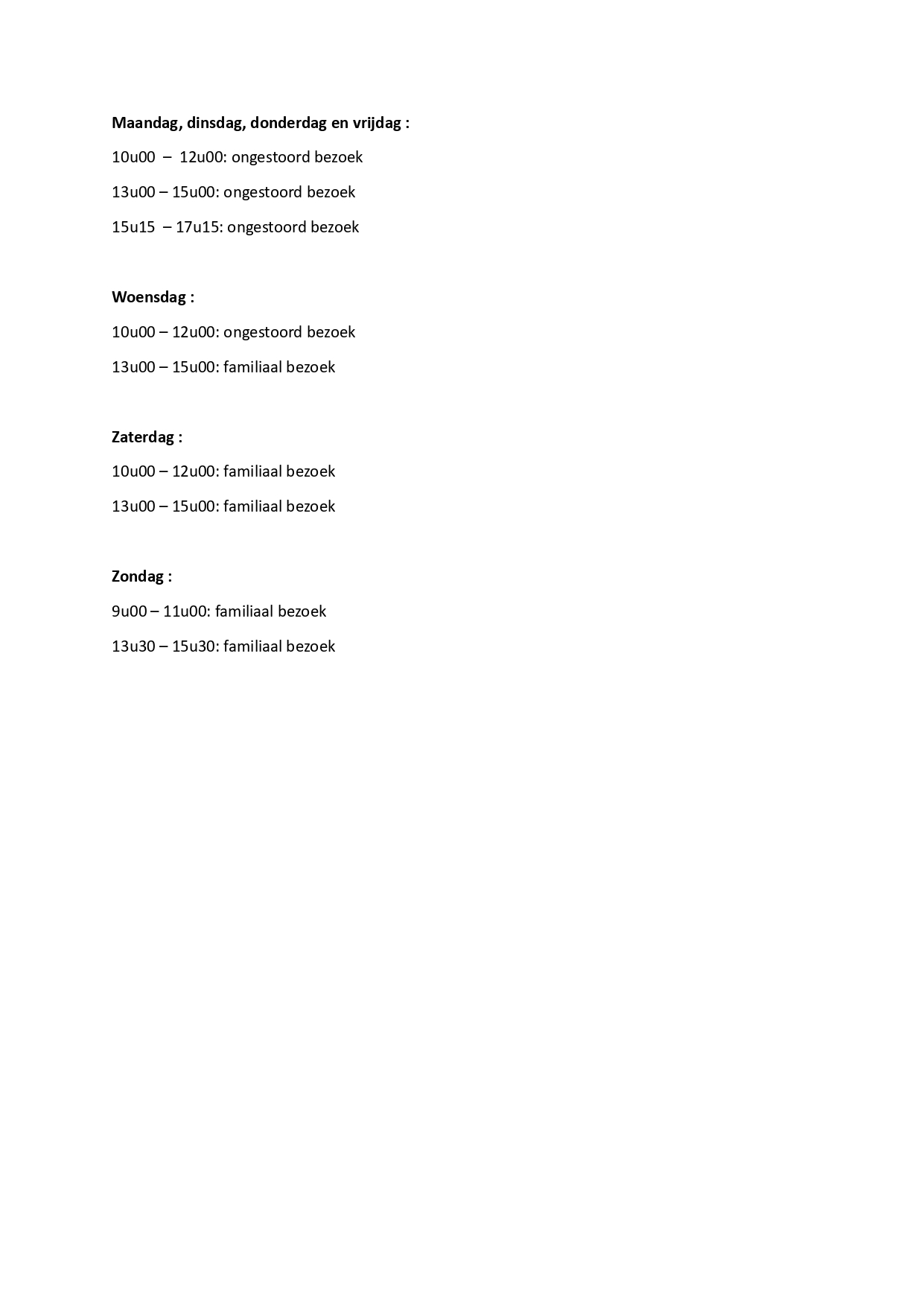 Op zondagen met familieactiviteit is er geen familiaal bezoek. Dit wordt vooraf aangekondigd in de wachtzaal en de bezoekzaal.